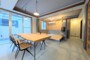 元々居宅として使われていたおしゃれな1戸建て住宅をシェアハウスに改装。リビングには、食事を楽しむテーブルに加え、座ってリラックスしながら交流できる「小上がり」を設置し、用途に応じて柔軟に利用可能です。デザインは近畿大学大学院で論文賞(修士)を受賞した一級建築士小谷勇太氏が担当。快適性と空間の広さを両立させ、地元産木の一枚板のテーブルを使うなど、あたたかみのあるデザインとしました。